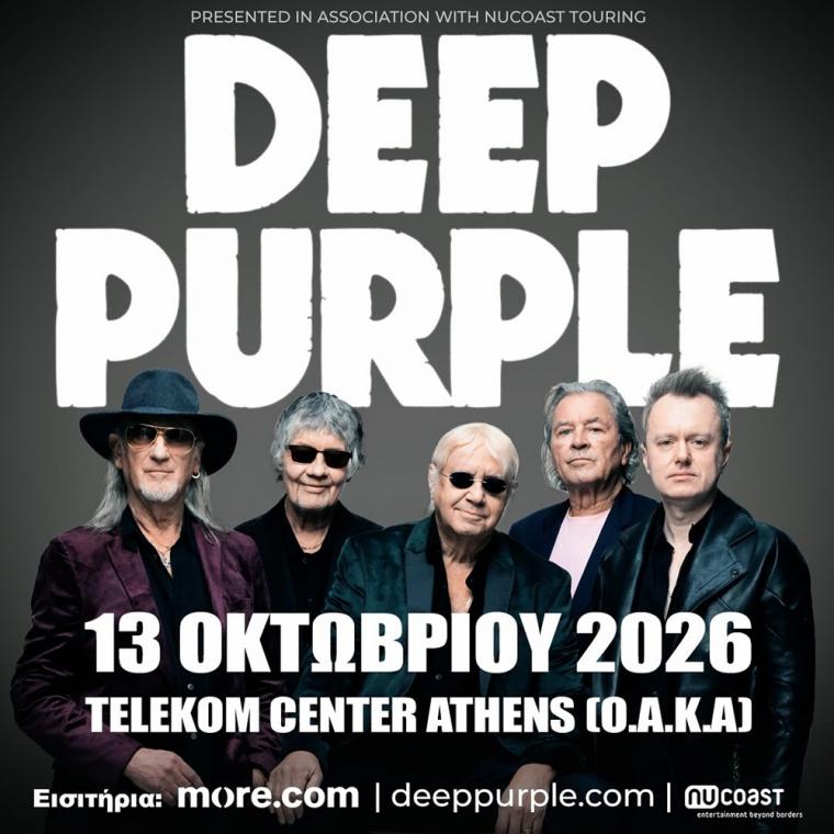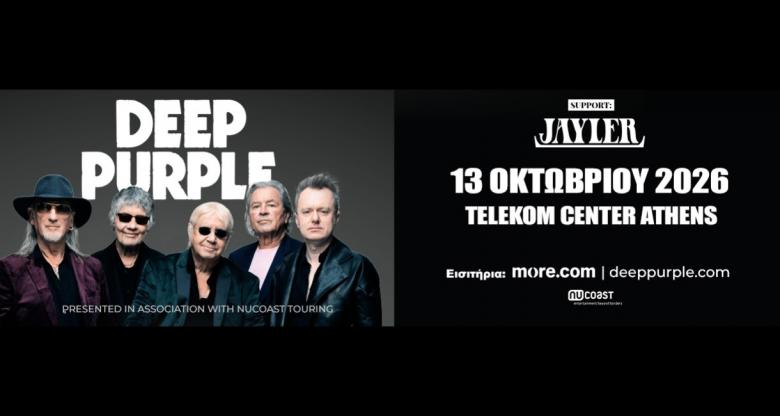 Οι Deep Purple επιστρέφουν στην Ελλάδα στις 13 Οκτωβριου 2026 στο Telekom Center Athens! Έχοντας καθορίσει τον ήχο της ροκ για περισσότερες από πέντε δεκαετίες, οι θρυλικοί Deep Purple παραμένουν ένα από τα καταξιωμένα συγκροτήματα διεθνώς. Special guest στη μοναδική αθηναϊκή τους εμφάνιση θα είναι οι ανερχόμενοι Jayler (UK), δημιουργώντας μια εκρηκτική μουσική σύμπραξη που ενώνει το παρελθόν και το μέλλον της ροκ.