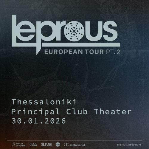 Τρία χρόνια μετά την κυριαρχική εμφάνισή τους στο Gagarin, οι Leprous επιστρέφουν στην Ελλάδα για 3 συναυλίες: την Παρασκευή 30 Ιανουαρίου στο Principal στη Θεσσαλονίκη και στις 31 Ιανουαρίου και την 1η Φεβρουαρίου στο Gagarin205 στην Αθηνα!